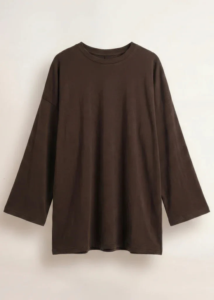Flowing in a relaxed two-piece silhouette with wide, airy sleeves and an easy drape. Crafted from 100% cotton, it offers breathable comfort with a natural warmth that works beautifully for cooler days, layering easily under coats while staying comfortable indoors. The fabric falls softly over the body for effortless wear from morning through evening.